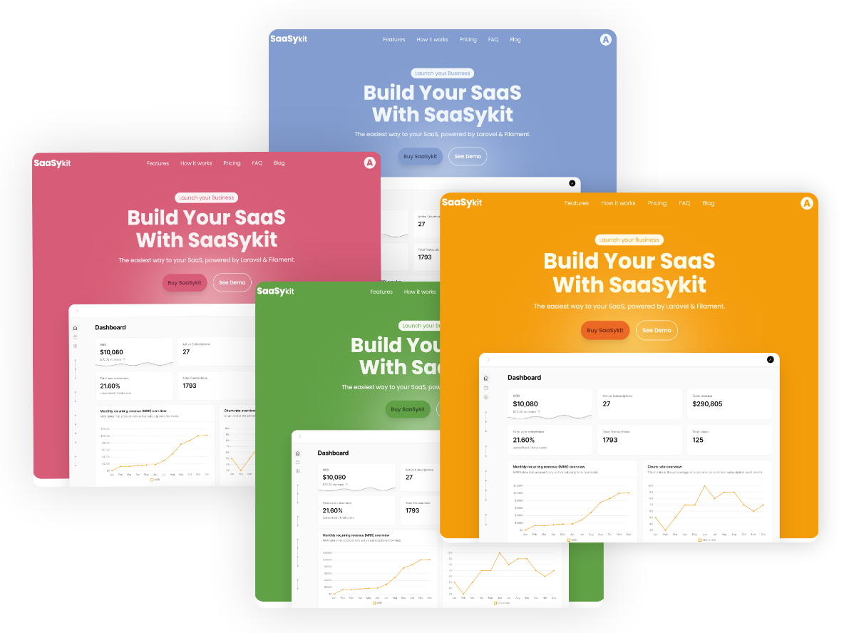 SaaSykit is built on top of Laravel with the intention to save you time and effort by not having to build everything needed for a modern SaaS from scratch, like payment provider integration, subscription management, user authentication, user & role management, having a beautiful admin panel, a user dashboard to manage their subscriptions/payments, and more.